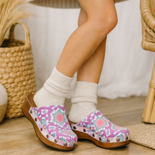 Zueco alto con tacón, cuero anaconda Oro , madera muy liviana. Altura taco 8 cm. Sin ajuste.