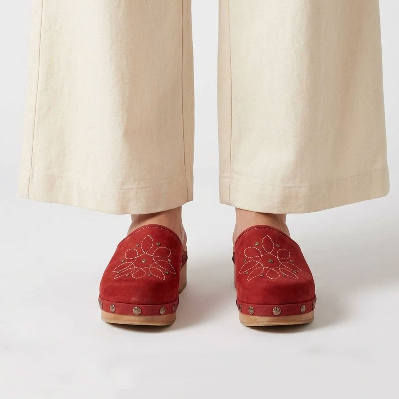 Nuestro zueco mandala con aplicación de bordado, ha sido fabricado en cuero nobuck 100% natural, forro de badana y madera muy liviana.